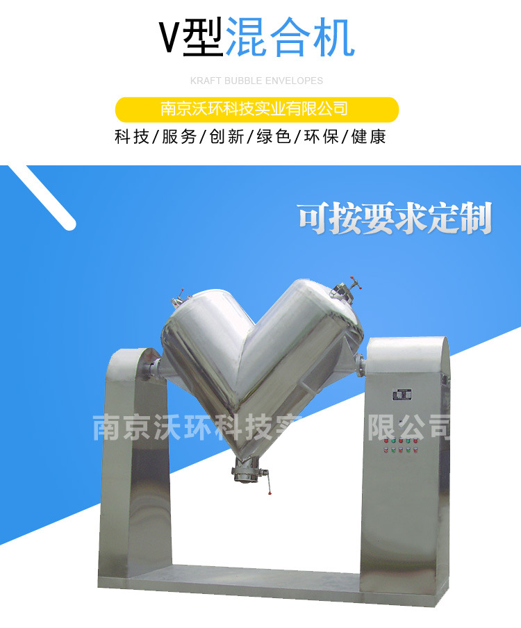 產(chǎn)品概述: 本機(jī)適用于制藥、化工、食品的干粉狀、顆粒裝物料的混合。該機(jī)混料筒結(jié)構(gòu)獨(dú)特,混合均勻,效率高,不積料。整機(jī)結(jié)構(gòu)簡(jiǎn)單,操作容易。外表面和物料接觸部分均采用優(yōu)質(zhì)不銹鋼制造,造型美觀,維護(hù)、清洗方便。 應(yīng)用場(chǎng)景: 本機(jī)用于制藥及其它行業(yè)的粉狀或粒狀物料混合之用。本系列混合機(jī)有高效混合型和普通混合型兩種,高效型混合機(jī)主要對(duì)較細(xì)的粉;?qū)δ骋恢髁虾枯^少的物料均能混合均勻;普通型混合機(jī)主要適用于一般物料或產(chǎn)量較大的企業(yè)使用。筒體光滑無死角、整機(jī)采用不銹鋼材料制作、且外型美觀等特點(diǎn)。 工作原理: 本機(jī)一端裝有電機(jī)與減速機(jī),電機(jī)功率通過皮帶傳給減速機(jī),減速機(jī)再通過聯(lián)國(guó)器傳給V型桶。使V型桶連續(xù)運(yùn)轉(zhuǎn),帶動(dòng)桶內(nèi)物料在桶內(nèi)上、下、左、右進(jìn)行混合。 材質(zhì)及結(jié)構(gòu): 1、 混合機(jī)的筒體采用2.5mm304-2B不銹鋼材料制作,外包采用1.2mm304-2B的不銹鋼材料制作,支架采用5#槽鋼。 2、混合的出料閥選用全不銹鋼精加工而成,并在連接處采用定型硅橡膠材料密封,確保機(jī)器在工作時(shí)的密封效果。 3、混合機(jī)的進(jìn)料口采用選進(jìn)的快開結(jié)構(gòu),使用戶在進(jìn)料和清洗時(shí)操作簡(jiǎn)便。 4、混合機(jī)筒體兩側(cè)拼縫處加焊兩塊不銹鋼引板并采用拋光處理,使筒體內(nèi)無一處死角,確;旌蠙C(jī)在混合、清洗時(shí)能夠達(dá)到理想的效果。 5、混合機(jī)內(nèi)設(shè)有強(qiáng)制攪拌裝置。